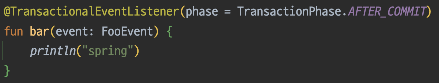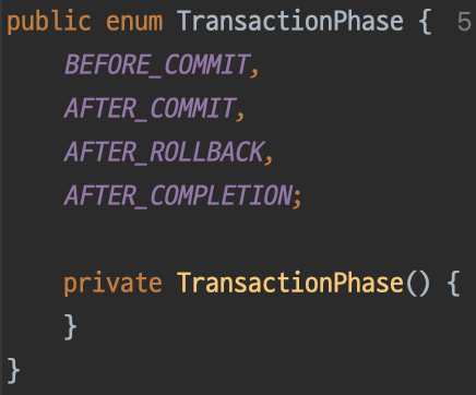 @TransactionalEventListener애너테이션은 이벤트 발행 메서드의 트랜잭션 상태에 따라 이벤트 호출 시점을 결정해 준다.
