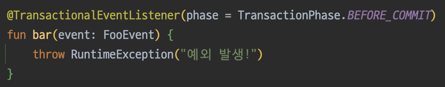 이름에서부터 명확하게 의도를 파악할 수 있다. 하지만 @EventListnere애너테이션에서의 예외 발생을 떠올려보면 한 가지 의문이 생긴다.